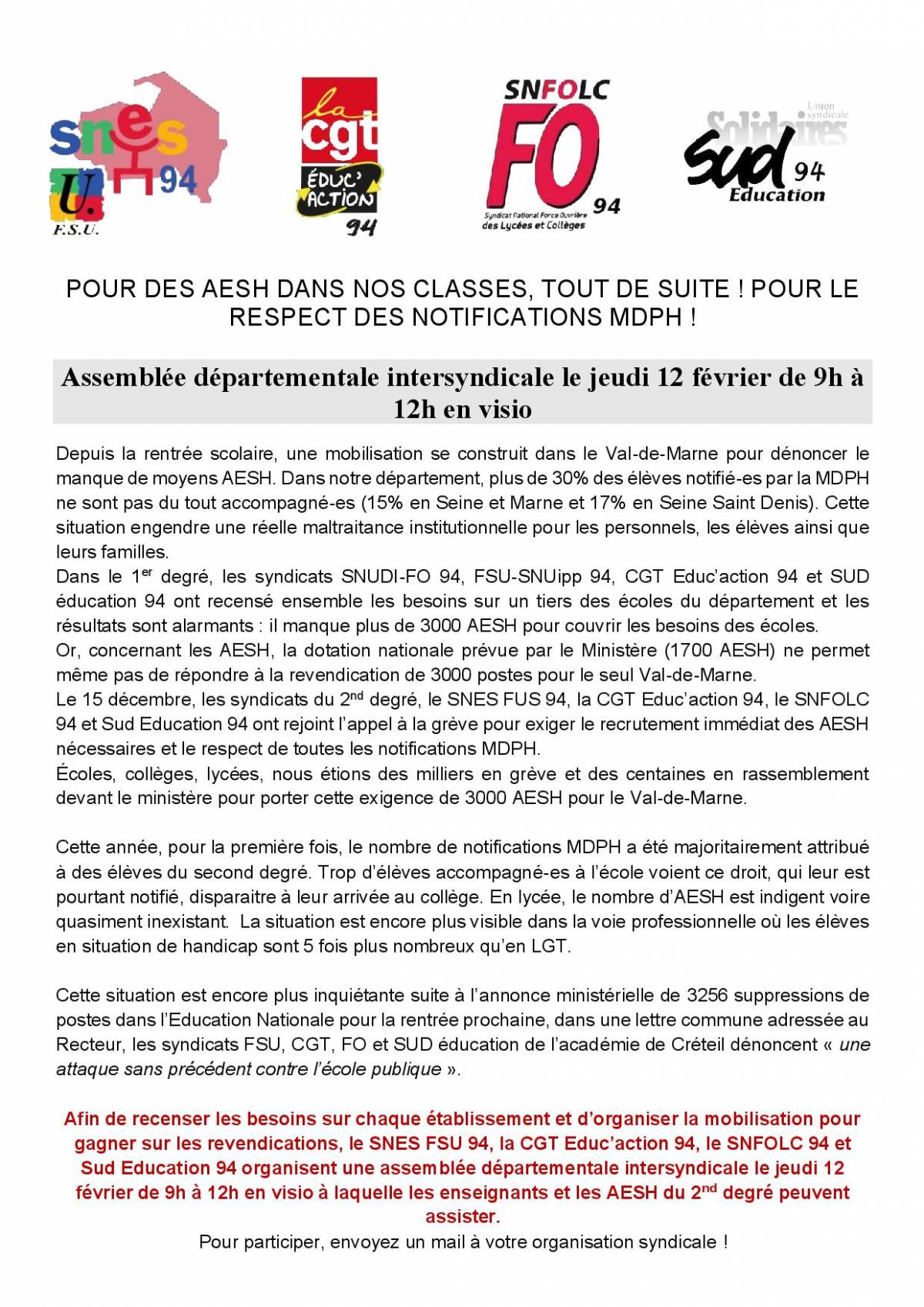 Télécharger le documentPour le 2d degré - Assemblée départementale intersyndicale le jeudi 12 février de 9h à 12h en visio (format pdf)