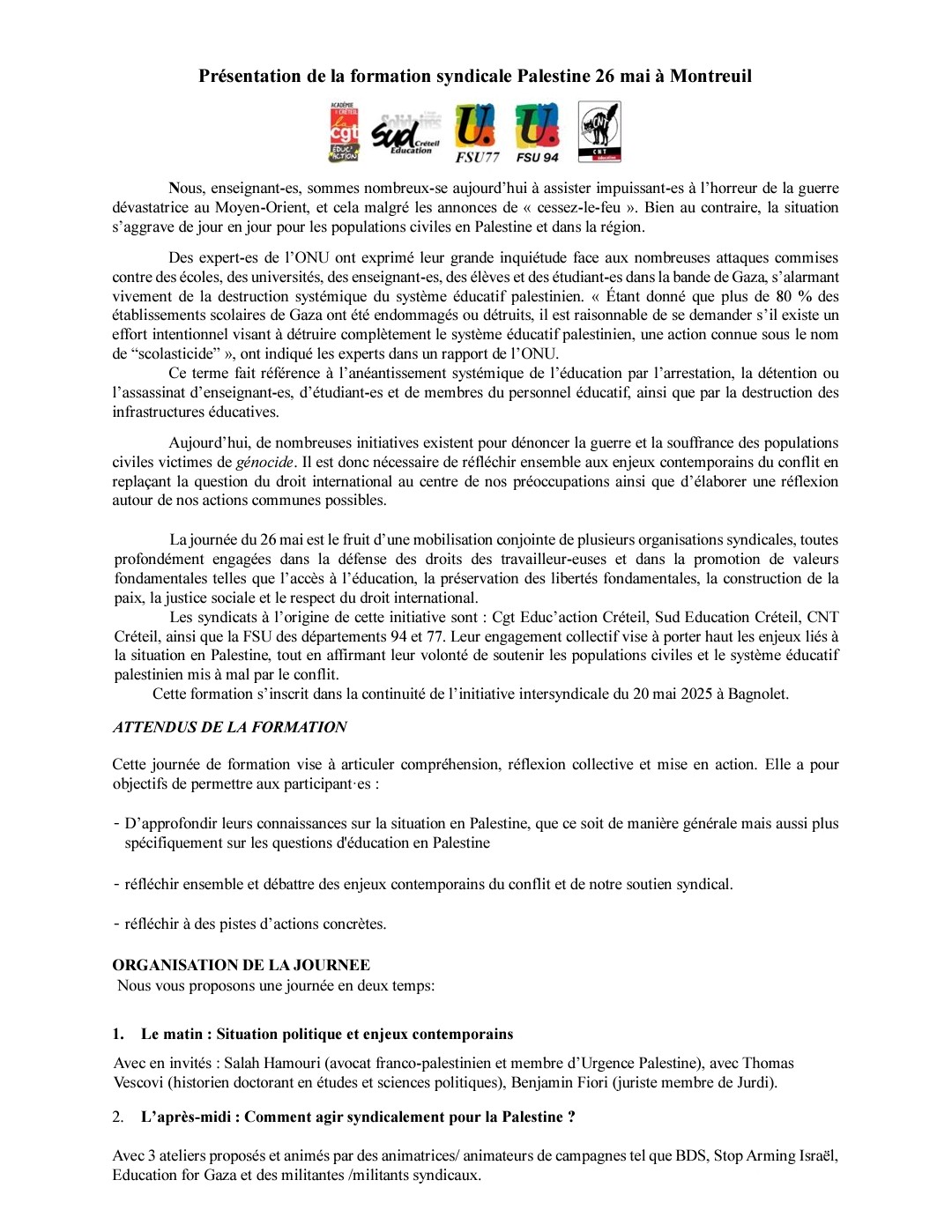 Formation intersyndicale : comment militer syndicalement pour la Palestine dans l’Éducation nationale ?