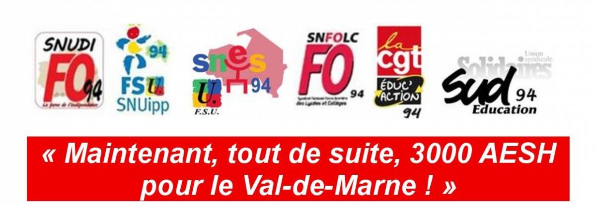 Aussi, face aux conditions scandaleuses de scolarisation faites aux élèves en situation de handicap dans notre département, les organisations syndicales du Val-de-Marne appellent à amplifier la mobilisation en cours et à organiser la suite de la grève pour gagner sur toutes nos revendications !